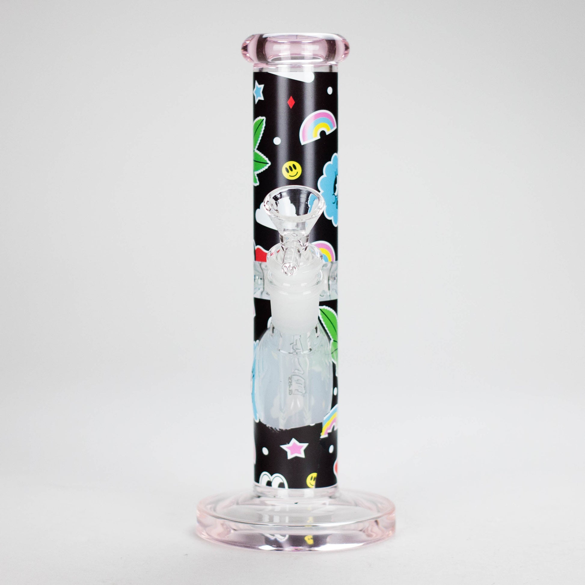 Haze | 9″ Face Emoji Straight Tube Glass Bong with Color End – Pink (Mini-Z)