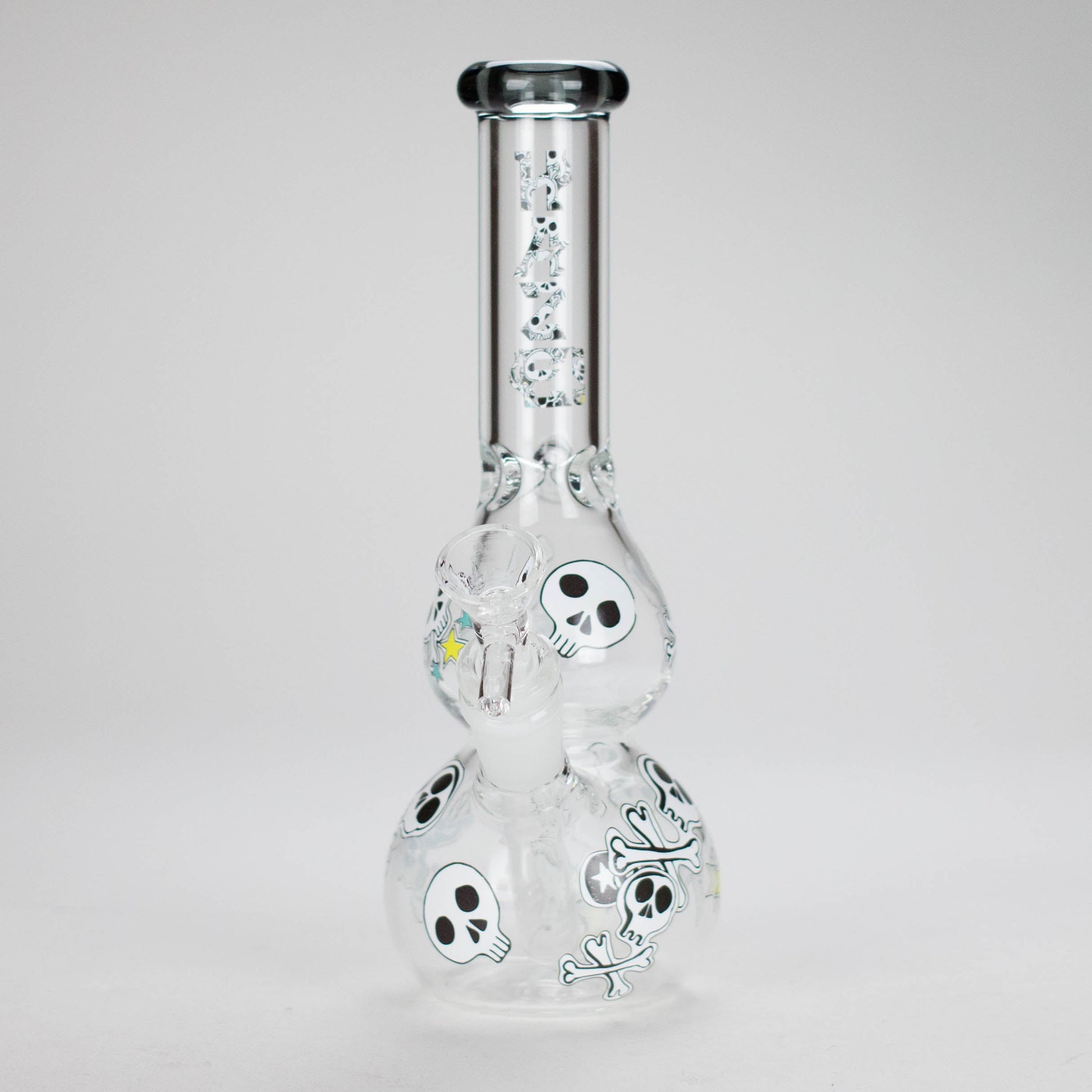 Add a dark, edgy vibe to your sessions with the Haze 9-Inch Skulls Bubble Glass Bong – Mini-P. Featuring bold skull graphics and a sleek charcoal black finish, this bong blends gothic style with functional design.